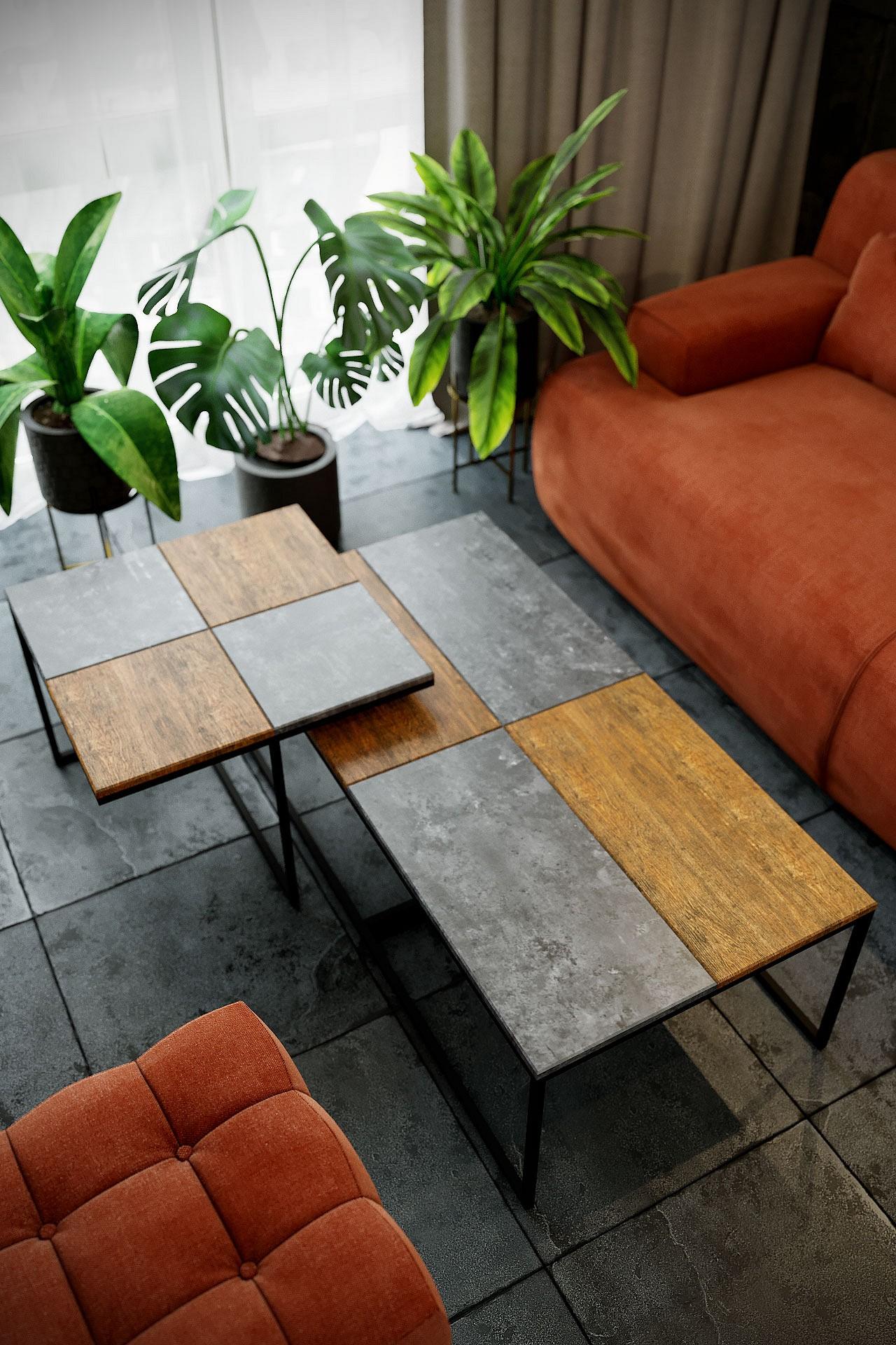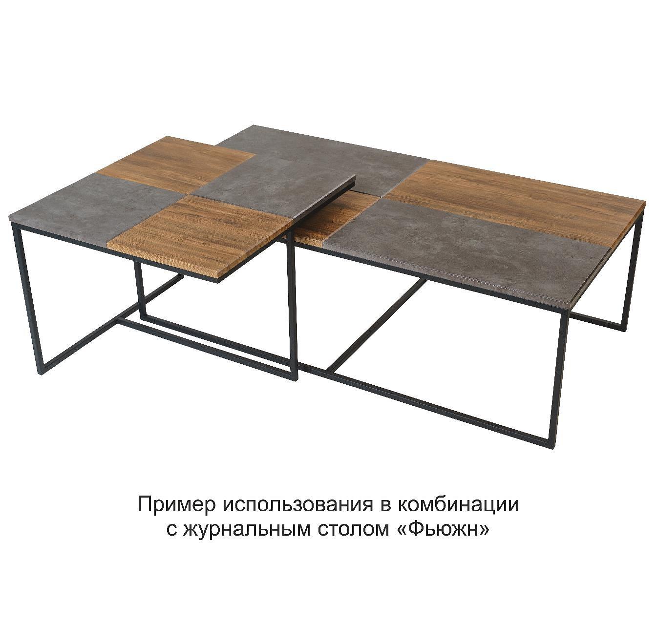 Основа стиля в столе Фьюжн заложена в подстолье, выполненном из металла и столешнице, которая сочетает простоту камня и естественность дерева. Таков дизайнерский прием сочетания декоративного покрытия в цвете дуб американский и серый бетон.
