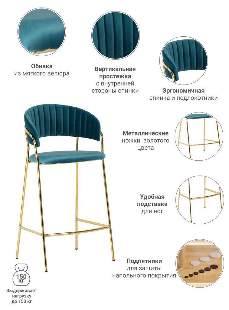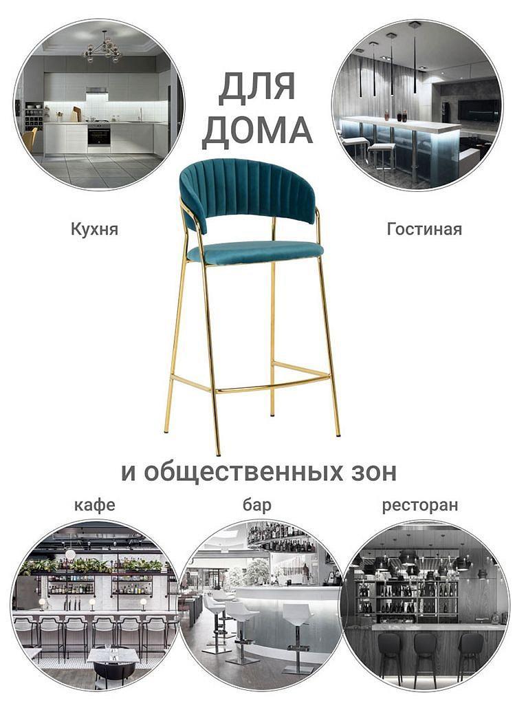 Барный стул Turin бирюзовый с золотыми ножками повторяет дизайн моделей стульев Turin и Avatar, что позволяет реализовать различные пространства помещения в едином стилевом решении.