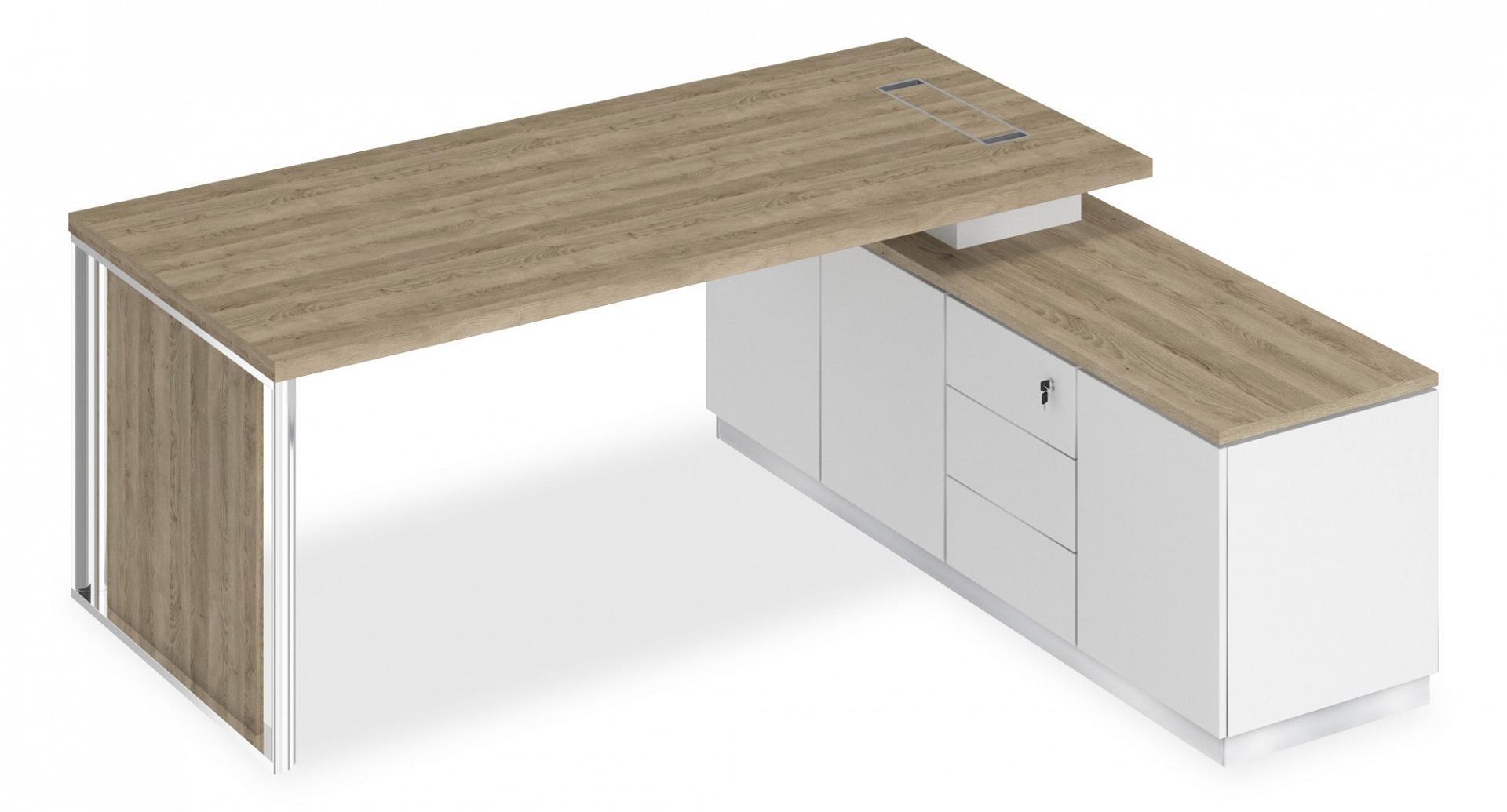 Стол для руководителя предусматривает правое и левое расположение опорной тумбы.