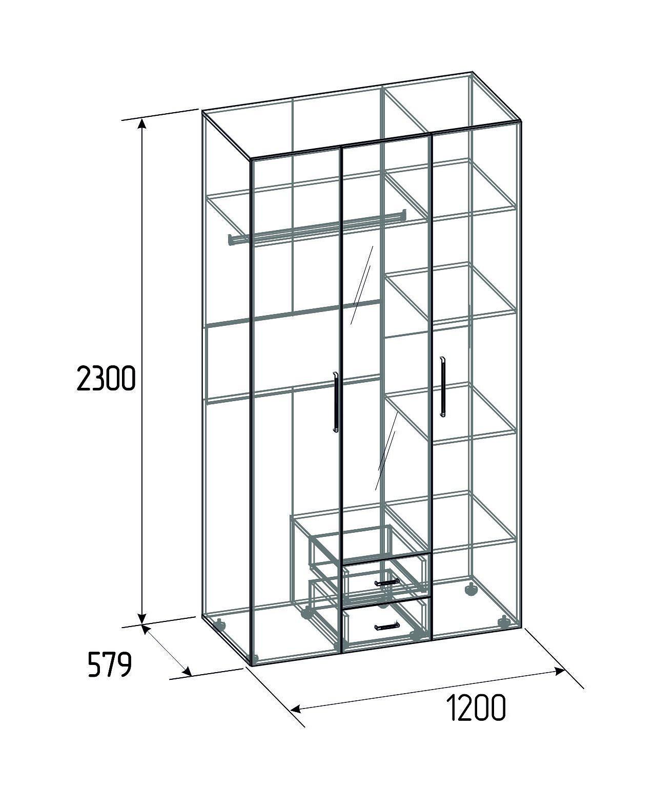 Шкаф платяной Монако 444 создан фабрикой Глазов-Мебель (Россия) и входит в серию Монако. Зеркальный, матовый фасад изготовлен из качественных и долговечных материалов (ЛДСП Е1, стекло) и гармонично дополняет матовый корпус шкафа. Шкаф платяной Монако 444 наиболее актуален для таких зон, как гостиная, кабинет, прихожая, спальня и имеет следующие габариты: 1200 мм. в ширину, 2300 мм. в высоту, глубина шкафа составляет 579 мм. В комплектацию данной модели входит 1 штанга для вешалок, 2 ящика, 3 дверцы, 5 полок, входящие в комплект, а срок изготовления обычно не превышает 3 суток. На товар распространяется гарантия 24 месяцев. Приобрести шкаф платяной монако 444 можно в интернет-магазине Mebelion.ru за 23979 руб.
