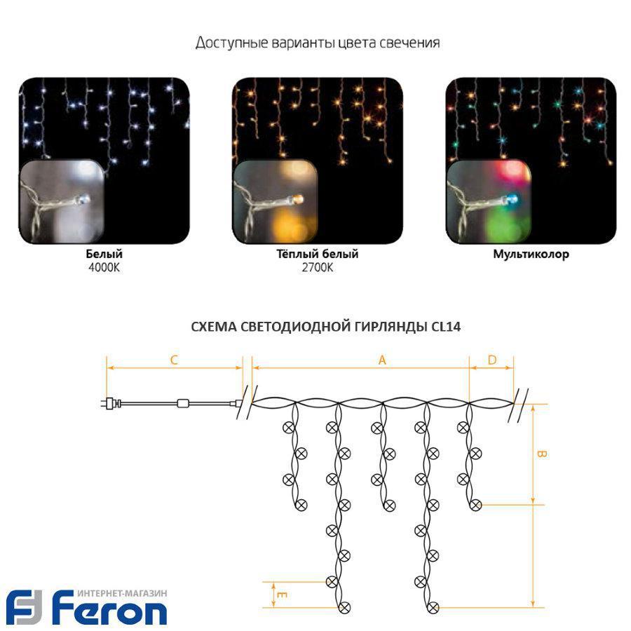 Гирлянда светодиодная "бахрома", белый свет, cl14