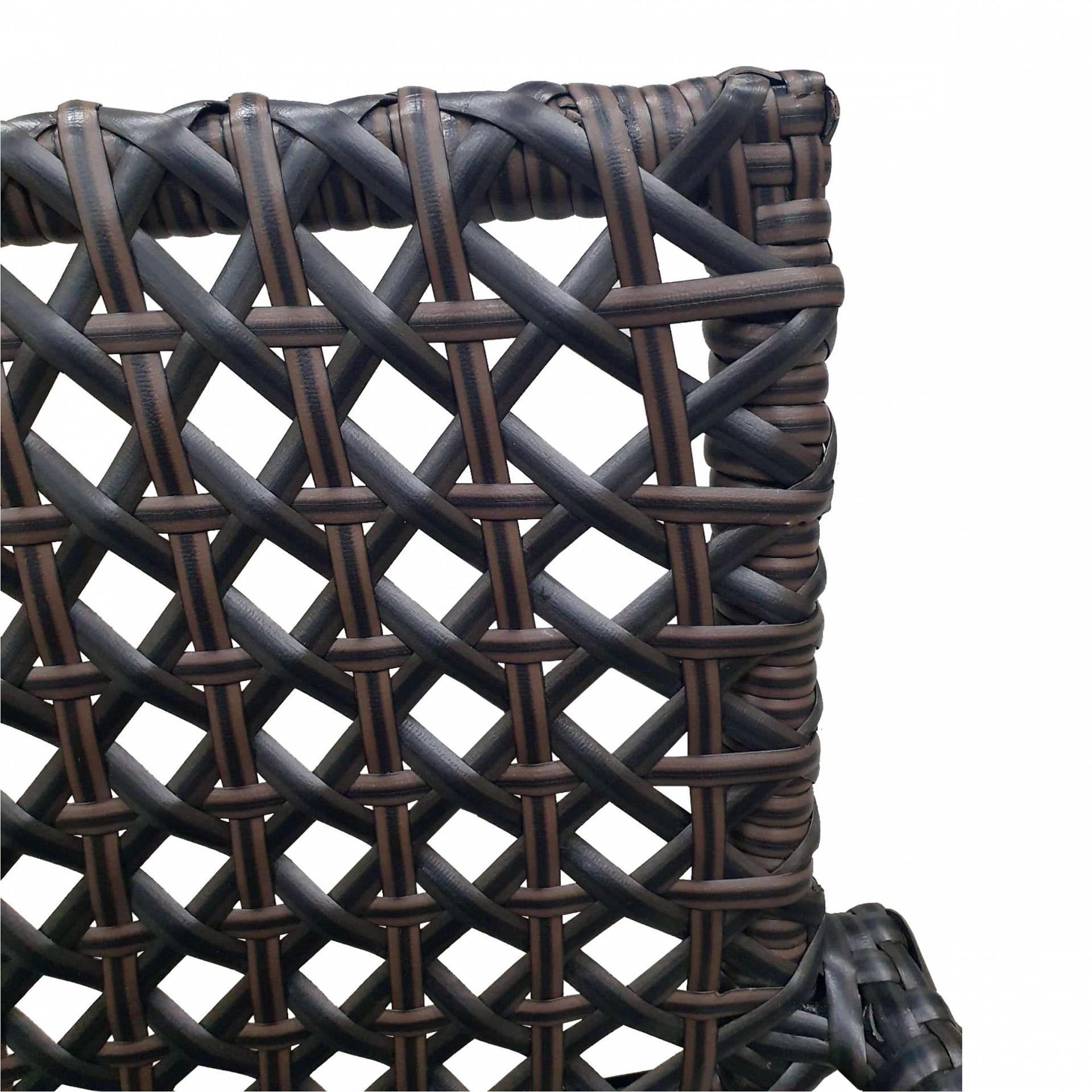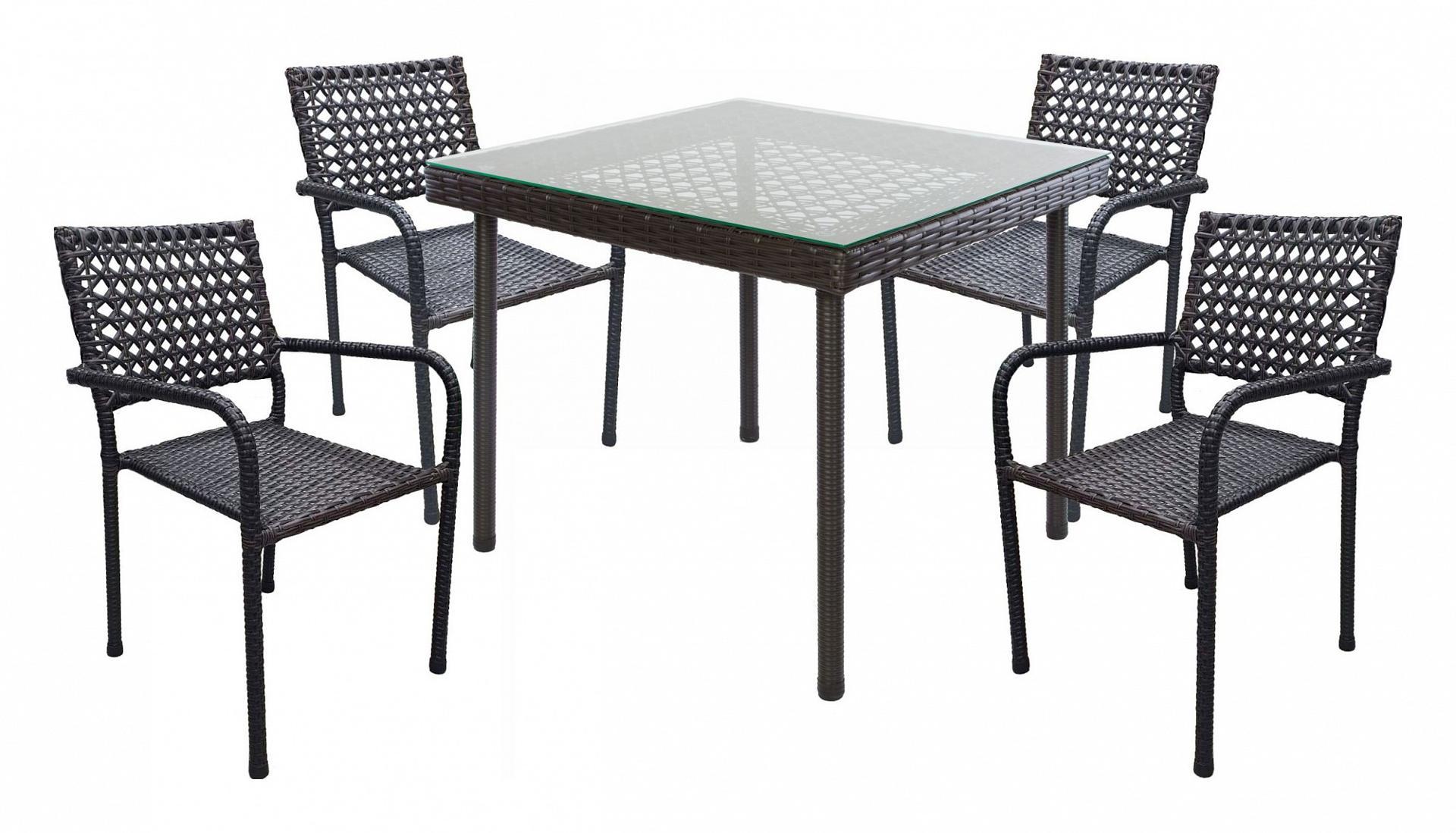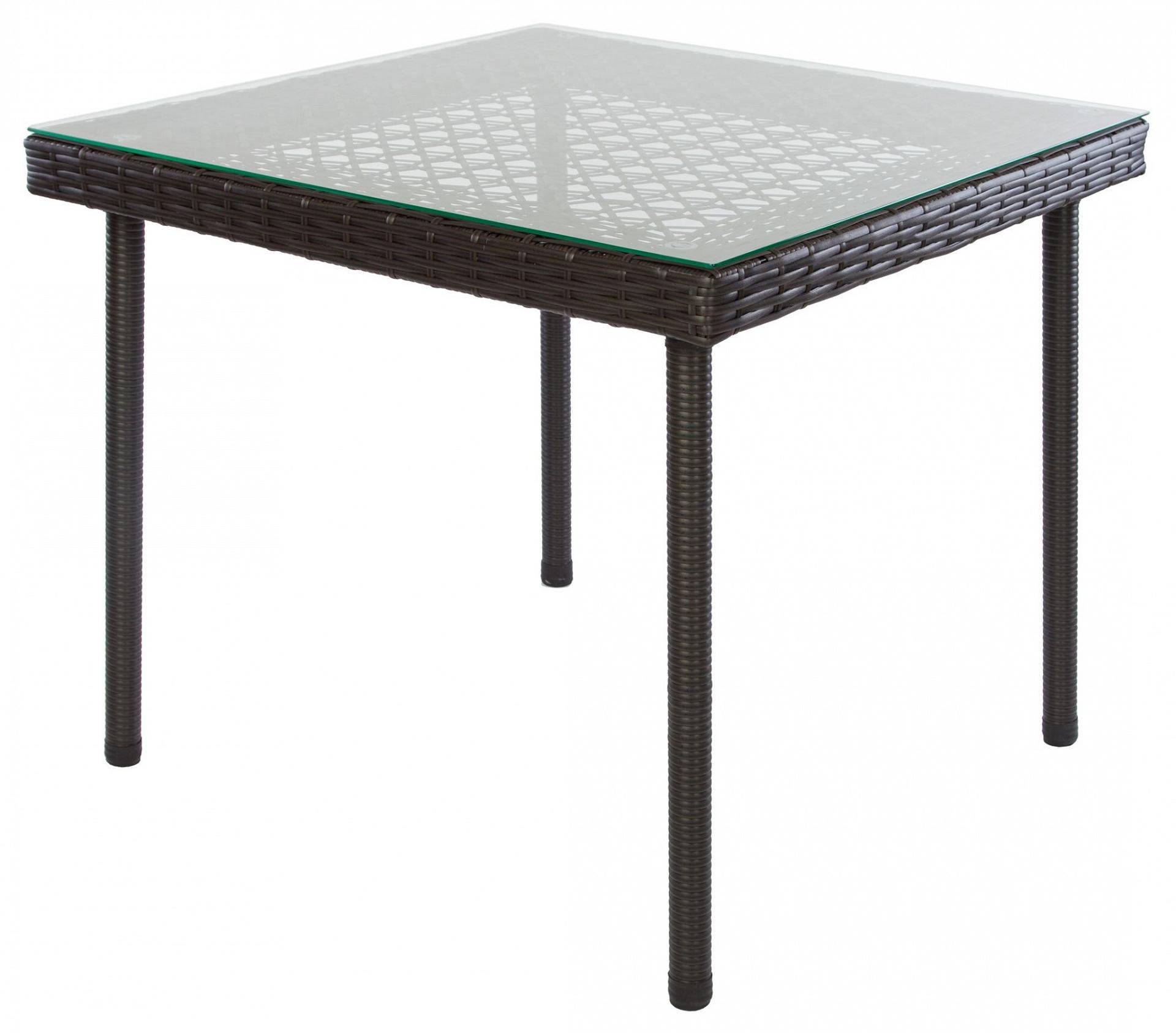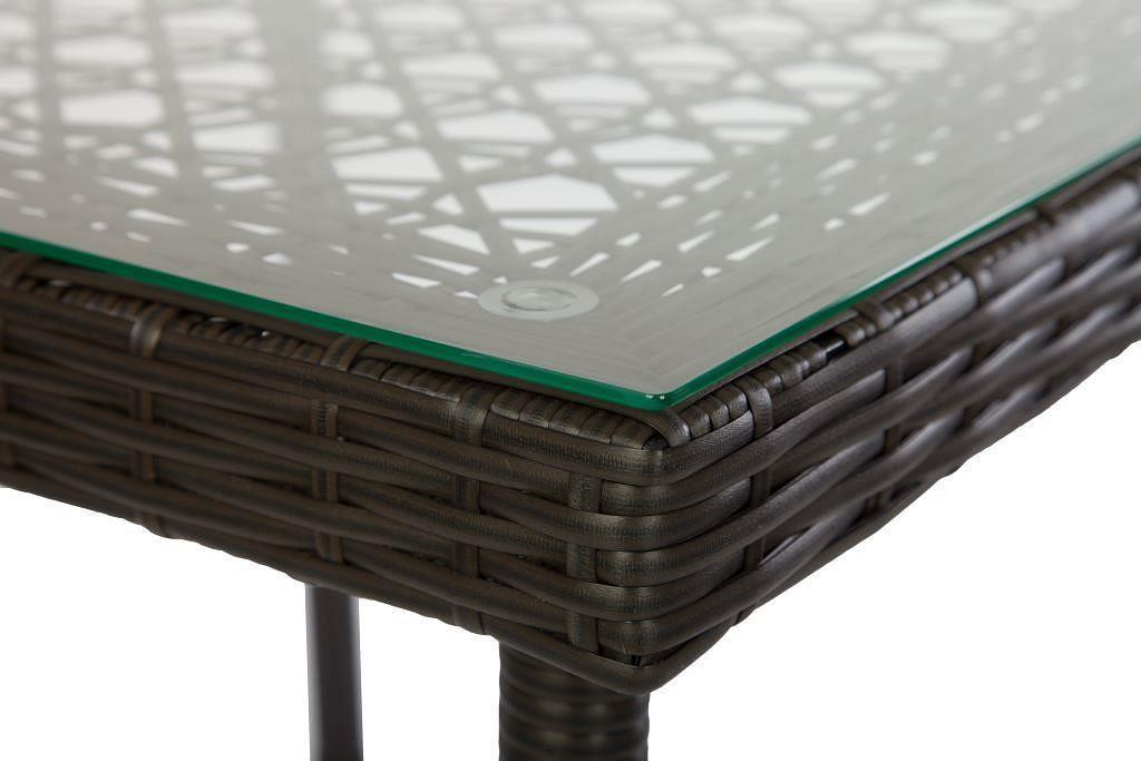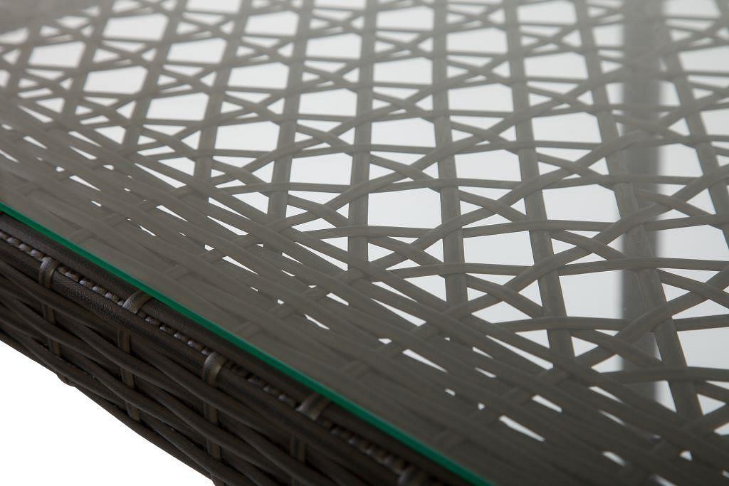 Каркас - металл. Плетение - искусственный ротанг. Без подушек. Сидение - плетение из искусственного ротанга, позволяет комфортно пользоваться креслом без подушки. Стекло - прозрачное.