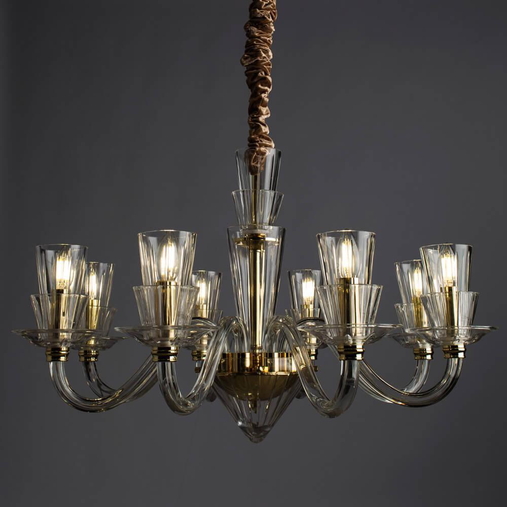 Поразительная модель 5122/09 LM-8 от итальянской компании Divinare относится к коллекции Susana и отлично подойдет для установки на потолок в гостиной, оформленной в стиле арт-деко. Подвесная люстра Divinare Susana 5122/09 LM-8 с конусными плафонами осветит помещение площадью 17.8 кв. м. Производитель Divinare рекомендует использовать для устройства лампы накаливания с цоколем E14 и мощностью 40 W. Прибор произведен с использованием материалов: стекло и металл и может использоваться для натяжного потолка. Основным цветом товара является золотой и прозрачный. Торопитесь сделать заказ в интернет-магазине SvetONe.
