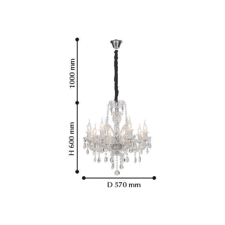 Невероятная модель 2022-8P от немецкой компании Favourite относится к коллекции Lawanda и отлично подойдет для установки на потолок в гостиной, оформленной в классическом стиле. Подвесная люстра Favourite Lawanda 2022-8P без плафонов осветит помещение площадью 17.8 кв. м. Производитель Favourite рекомендует использовать для устройства лампы накаливания с цоколем E14 и мощностью 40 W. Прибор произведен с использованием материалов: хрусталь и металл и может использоваться для натяжного потолка. Основным цветом товара является хромовый. Торопитесь сделать заказ в интернет-магазине SvetONe.