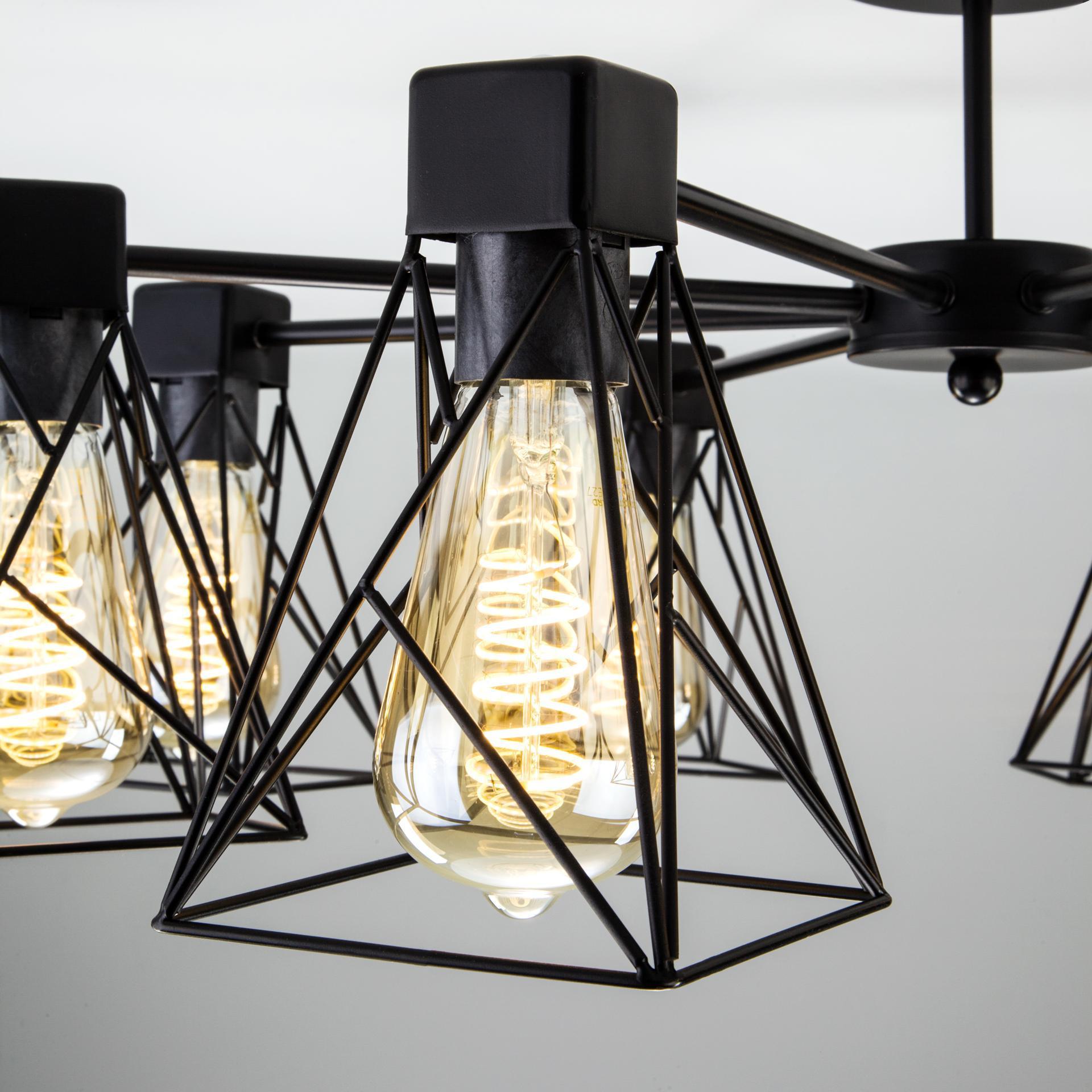 Украсить ваше потолочное пространство и создать качественное освещение на площади 36 м кв. поможет стильная люстра в стиле loft. Строгий внешний вид и конструктивная простота форм добавят в современный интерьер индустриального стиля, а гармоничный цветовой тандем из черного цвета и ламп теплого свечения подчеркнут его. В восьмирожковой люстре используются сменные лампы с цоколем E27, рассчитанные на максимальную мощность 60 Вт. Потолочный светильник оснащен металлическими плафонами. В производстве люстры использован высококачественный металл с надежным защитным покрытием. В интернет-магазине Минимир вы сможете купить потолочную люстру с доставкой по Москве, Санкт-Петербургу и России.