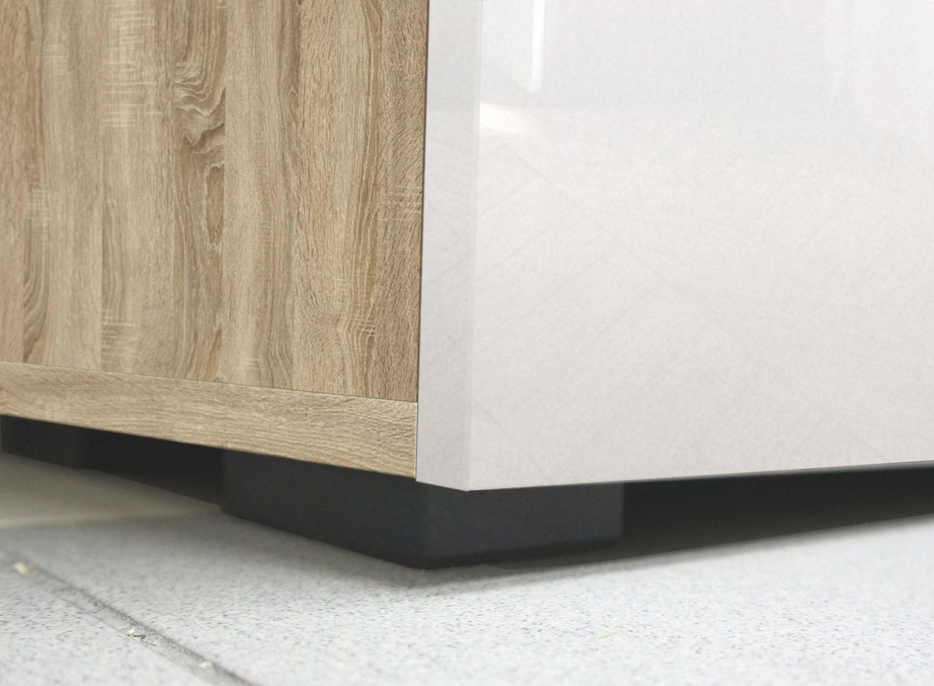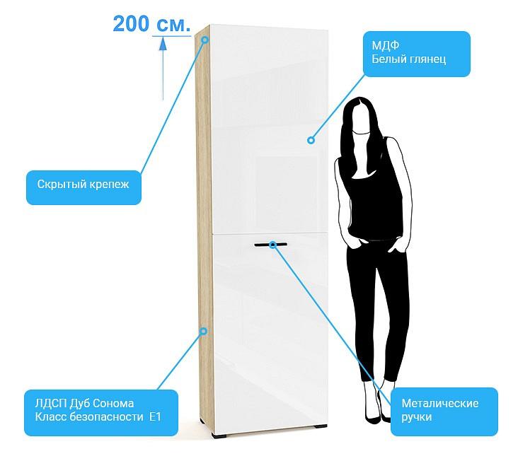 - Скандинавские декоры – ЛДСП Дуб Сонома и МДФ Белый глянец, мебельная ручка черного цвета.