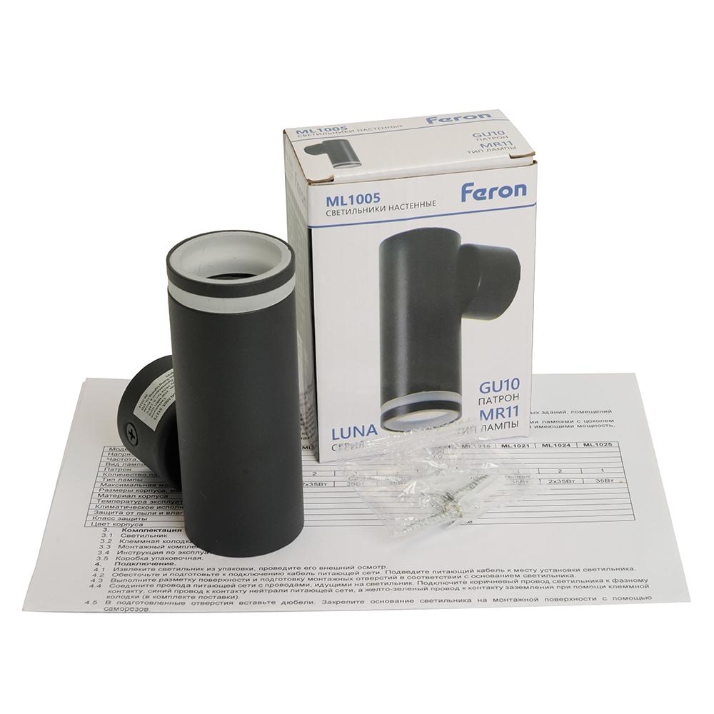 Светильник Feron ML1005 LUNA настенный под лампу GU10, черный 51375